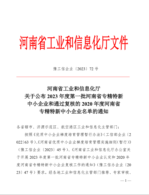 恭喜三門峽恒河電氣科技有限公司 榮獲 2023年度第一批河南省專精特新中小企業(yè)